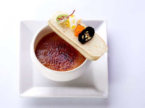 烤焦糖鴨肝布蕾襯蜜糖芒果與黑松露