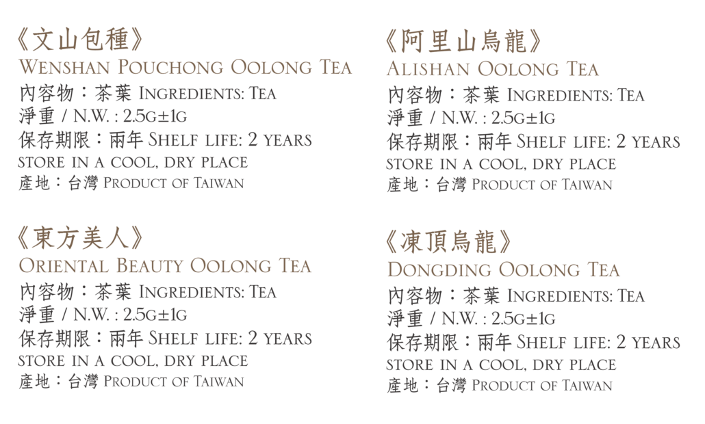 精選四款聞名遐邇的經典茗茶,以純粹的茶韻與甘醇,將寶島的山林清幽化作杯中的一抹愜意。